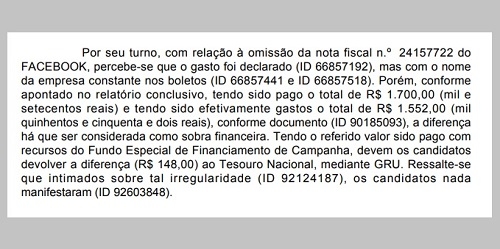 Um dos motivos da reprovação foi por causa de impulsionamentos no Facebook.