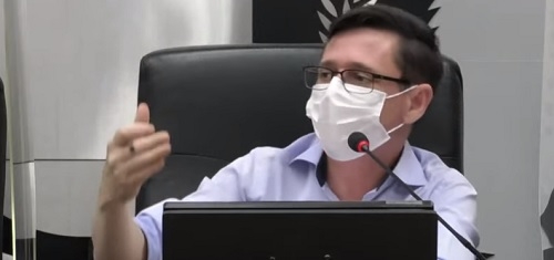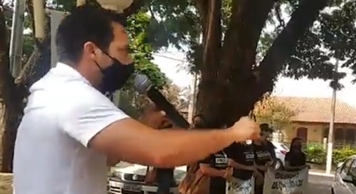 José Augusto, presidente da Câmara de Barbosa Ferraz, durante discurso em que manifestou apoio a professores municipais, que protestaram cobrando implementação do piso salarial; terça-feira.