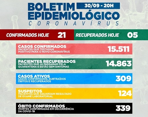 Média maior - Setembro terminou com 718 novo casos, média de 23,9 dia. Subiu em relação a agosto, quando a média diária foi de 17,5 casos. Já os óbitos diminuíram de 11 para sete.