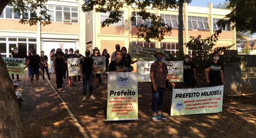 Um grupo de professores municipais de Barbosa Ferraz realizou protesto esta semana. Eles cobram o cumprimemto de lei municipal, aprovada em 2020, para complementação do piso salarial. Os professores usaram roupas pretas, faixas e cartazes e se concentraram em frente à prefeitura.