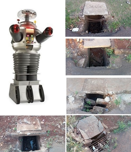 O Robô passou pelo jardim Albuquerque e quase entrou em tilt de tanto alerta de perigo com os bueiros da rua Carlos Boenig, entre as ruas Dr Luis Carlos Klank e João Pessa Jr. Mas isso não é "privilégio" da asa leste, não. O problema está por toda Campo Mourão.