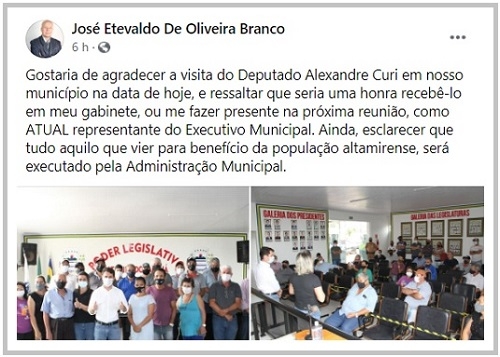 Quem também esteve em Altamira do Paraná foi o secretário de Estado Márcio Nunes. Este, porém, foi ao gabinete de Branco.