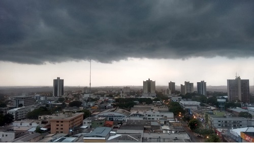 Vista de Campo Mourão às 9h30 desta sexta-feira. Segundo o Climatempo, a previsão é de 20 milímetros de chuva para o dia. No sábado a previsão é de mais 30, além de outros 30 mm no domingo. A temperatura máxima não passa dos 26 graus nesses dias.