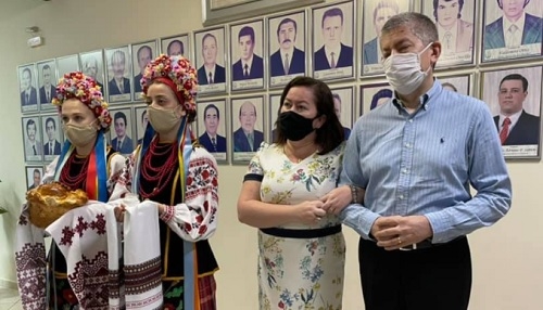 Tronenko e a embaixatriz Fabiana foram recepcionados pelo prefeito Vivaldo Lessa e pelo presidente da Câmara, Jenauro Hruba.