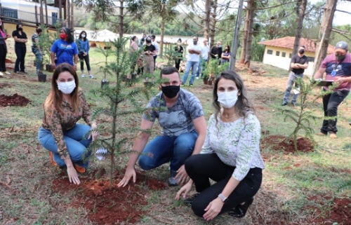 Servidores municipais de Campo Mourão que morreram de covid-19 foram homenageados nesta quinta-feira com o plantio de mudas de araucárias no Parque do Lago. O ato fez parte das atividades da Semana da Árvore. Familiares dos servidores plantaram uma muda no espaço do parque onde será o Bosque das Araucárias. A vice-prefeita Fátima Nunes participou do evento.