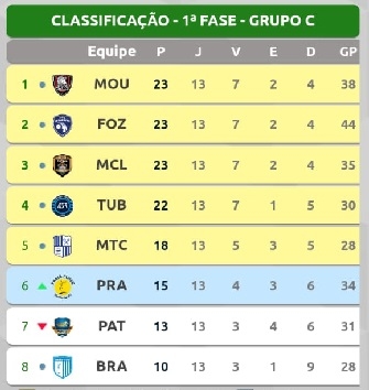 Campo Mourão lidera a chave, mas se perder pode cair para a quarta posição (os cinco primeiros se classificam).