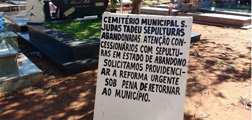 Os respossáveis têm 30 dias para providenciar melhoras, caso contrário os restos mortais serão levados para o ossário.