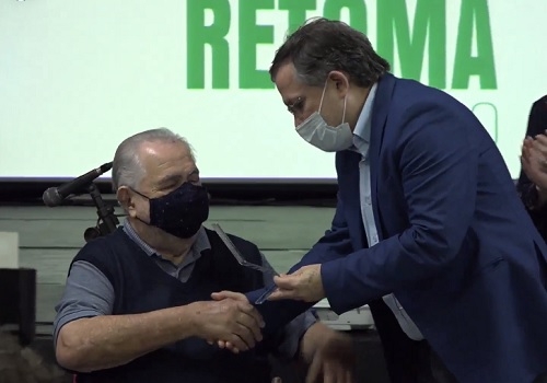 Augustinho Vecchi, ex-prefeito de Campo Mourão, ao ser homenageado em evento que comemorou os 40 anos de inauguração da Casa da Cultura. Ele era o prefeito quando o espaço foi inaugurado, em 8 de outubro de 1981; nesta quinta-feira à noite.