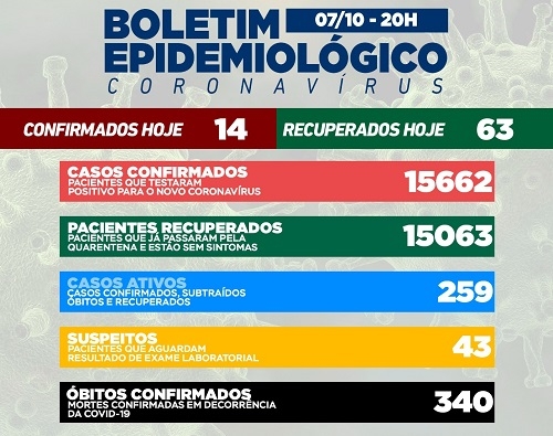 Regional - Mais 19 casos de covid-19 foram confirmados em outros oito municípios da região. O total desde o início da pandemia foi a 45.743, com 1.046 mortes.
