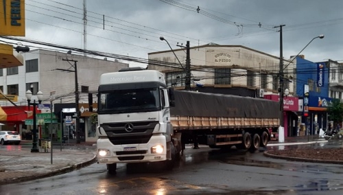 Carreta passa pelo trecho do calçadão, no centro de Campo Mourão, nesta quinta-feira.