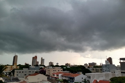 A imagem é das 18h desta quarta-feira, minutos antes de começar a chover em Campo Mourão. Segundo a previsão do Simepar vai chover todo dia pelo menos até o próximo dia 9. Nesta quinta e sexta chove bastante. A temperatura cai, mas nem tanto como se previu no início da semana. Só no sábado e domingo que o Simepar fala em máxima de 20 graus.