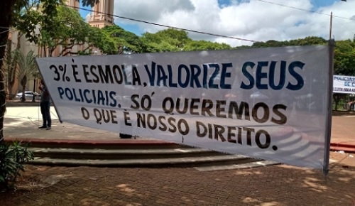 Um grupo de policiais militares protestou contra o governo do Estado, neta sexta-feira, em Campo Mourão.