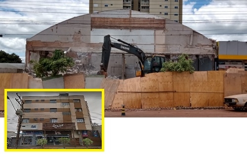 Um prédio de três andares, no centro de Campo Mourão, foi totalmente demolido. Ficava na rua São José, entre as avenidas Capitão Índio Bandeira e Manoel Mendes de Camargo. Era o edifício onde funcionava o Ópera Hall e antes, abrigou um cinema e até uma escolinha de futsal. Como diria a Dona Armênia, daquele novela antiga, o prédio foi parar "na chón"...