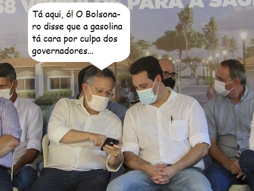 Nas falas foi citado que o governador gasta dinheiro público em Dubay e oferece "uma pizza" de reajuste aos policiais.