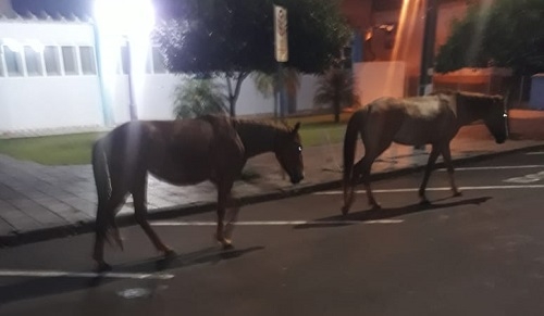 Cavalos passam em frente à Câmara de Goioerê.