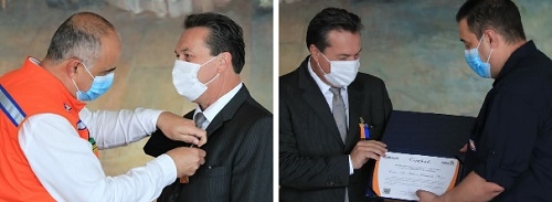 O secretário de Estado Márcio Nunes (Desenvolvimento Sustentável e Turismo) recebeu nesta quarta-feira condecoração da Defesa Civil do Paraná. A medalha Coronel Dario Natan Bezerra é destinada a militares, civis e instituições que desenvolvem ações relevantes de proteção e defesa da população.
