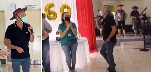 Em Campina da Lagoa, o prefeito Milton Luiz Alves foi ao bailão da terceira idade e não resistiu, não. Pegou o chapéu da banda gaúcha e também se arriscou a cantar o clássico "Querência Amada" (Teixeirinha). Teve direito a dancinha e tudo. Alves é gaúcho de Maximiliano de Almeida, município de 4.254 habitantes. Em tempo: Quem viu a cantoria disse que é melhor o prefeito seguir na prefeitura...
