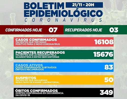 Campo Mourão teve sete casos de covid-19 confirmados neste domingo. Os recuperados foram três. O número de casos ativos subiu para 83 (tinha caído para 63). Na ala covid há sete pacientes internados, sendo cinco na unidade de terapia intensiva. Três mourãoenses estão hospitalizados, sendo dois na UTI.