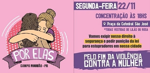 Um grupo de mulheres vai realizar uma passeata em Campo Mourão nesta segunda-feira (18h).