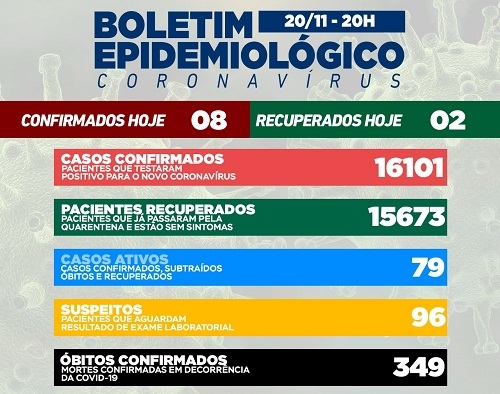 Oito casos de covid-19 foram confirmados neste sábado em Campo Mourão, Os recuperados foram dois. O casos ativos tiveram uma subidinha e foram a 79. Na ala covid são cinco as internações, sendo quatro na unidade de terapia intensiva. Dois internados na UTI, dois são de Campo Mourão.
