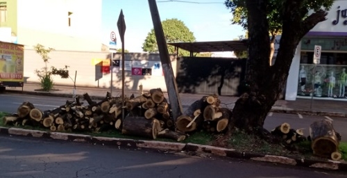 Lixo no canteiro central não pode. E toco de árvode, pode? Esses ai estão há uma semana na av. Manoel Mendes de Camargo".