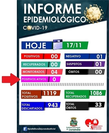 Nenhum morador de Juranda está com o vírus ativo da covid-19. É o que mostra o boletim desta quarta-feira. O município já teve, desde o início da pandemia, 1.119 casos, com 1.086 recuperados e 33 mortes. Ao todo, 10 das 25 cidades da região estão sem caso ativos da doença. São elas: