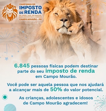 Está começando mais uma campanha do Imposto de Renda de Campo Mourão. A primeira etapa é para adesões até o último dia útil de dezembro. Pessoa física que declara no modelo completo pode destinar até 6%. Pessoa Jurídica tributada pelo lucro real pode destinar até 1%. O dinheiro para para entidades que atendem crianças, adolescentes e idosos.