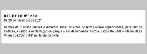 O nome já esta definido - Parque Lagoa Dourada - Memorial às Vítimas da Covid-19".