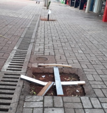 Cadê a árvore que estava aqui? Está difícil para o calçadão de Campo Mourão ter novas árvores.