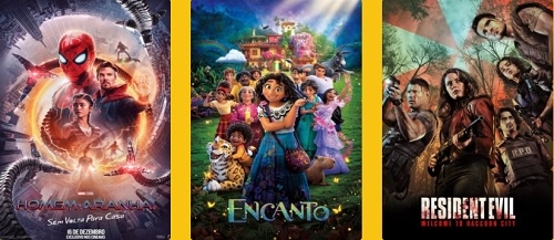 Em cartaz - Enquanto o Homem-Aranha não chega, seguem em exibição a animação "Encanto" (19h30) e "Resident Evil Bem vindo a Raccoon City" (19h45).