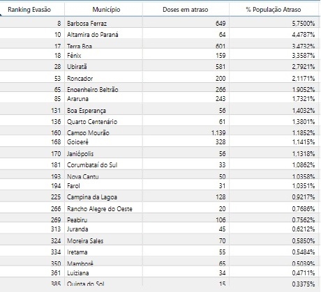 O Tribunal de Contas do Estado publicou ranking sobre a evasão na segunda dose da vacina contra a covid-19.