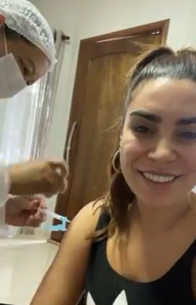 Olha quem foi tomar a dose de reforço da vacina contra a covid-19 em Farol. Sim, a cantora Naiara Azevedo. Tudo com direito a vídeo postado nas redes sociais. "Fazer um registro de gratidão e também para parabenizar a minha cidade aqui no interior do Paraná, Farol", disse ela. "Que todos tenham essa oportunidade", completou.