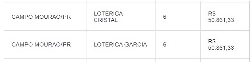 A Mega-Sena da Virada saiu para duas apostas e cada uma vai levar R$ 189 milhões. Uma é de Campinas/SP e outra de Cabo Frio/RJ. Na região, quatro apostas passaram triscando. Duas de Campo Mourão, uma de Goioerê e uma de Nova Cantu acertaram cinco das seis dezenas sorteadas. Foram 1.712 nesta situação em todo o País. Ganharam, cada uma, R$ 50,8 mil.