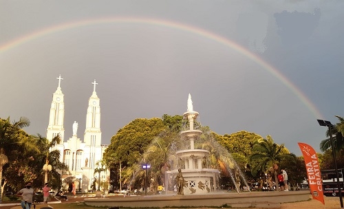 Arco-íris visto a partir das praças centrais de Campo Mourão. Ivo Quennehen (QITV)