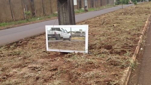 Dizem que quebrar espelho dá sete anos de azar. E colocar espelho quebrado no canteiro central, dá multa de quanto? A avenida é a Guilherme de Paula Xavier.