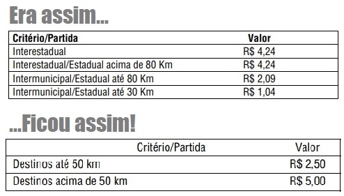 A cobrança foi simplificada para apenas duas faixas - viagens até 50 km e acima de 50 km.