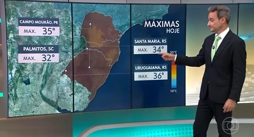 Olha Campo Mourão de volta na previsão do tempo, em rede nacional, através da Globo. Nesta segunda-feira foi no "Jornal Hoje". Só que agora não foi por previsão de chuvarada, como das outras vezes, e sim pelo calor. A previsão era de 35 graus para os mourãoenses.