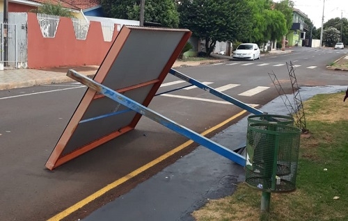 Ponto de ônibus caído, nesta segunda-feira à tarde, a rua Bronislau Wronski, na região do jardim Aeroporto.