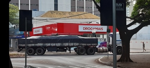 Carreta passa pelo calçadão, em Campo Mourão, na manhã desta sexta-feira. Foto: QITV