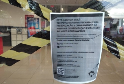 A agência do Bradesco de Campo Mourão não abriu nesta sexta-feira. Na porta, o recado: "Esta agência está temporiamente fechada para higienização e cumprimento de medidas de prevenção e combate ao novo coronavírus". Teve funcionário que testou positivo, daí a medida.