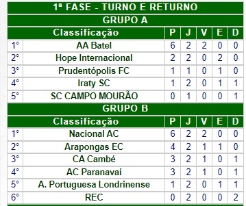 Os time de Guarapuava já tinha vencido o Iraty e lidera o grupo A, com 6 pontos.