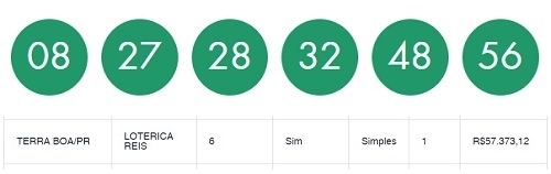 NInguém acertou as seis dezenas da Mega Sena sorteadas nesta terça-feira. Assim, o prêmio vai chegar a R$ 35 milhões no próximo sorteio. A quina teve 34 apostas vencedoras e cada um leva R$ 57,3 mil. Três delas são do Paraná, sendo uma de Terra Boa, feita na lotérica Reis.