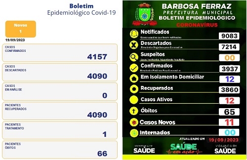 Rede social - Já a prefeitura de Barbosa Ferraz publicou nesta terça-feira o boletim em suas redes sociais. Cita 12 casos ativos (11 novos), mas nenhum paciente internado por causa da covid.