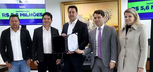 O governo do Paraná liberou nesta terça-feira mais R$ 27,1 milhões do programa Asfalto Novo, Vida Nova para cinco municípios. Um deles é Farol, que terá R$ 5 milhões do Estado e mais R$ 614 mil de contrapartida para obras de pavimentação. O prefeito Oclécio Meneses recebeu a liberação das mãos do governador Ratinho Jr.