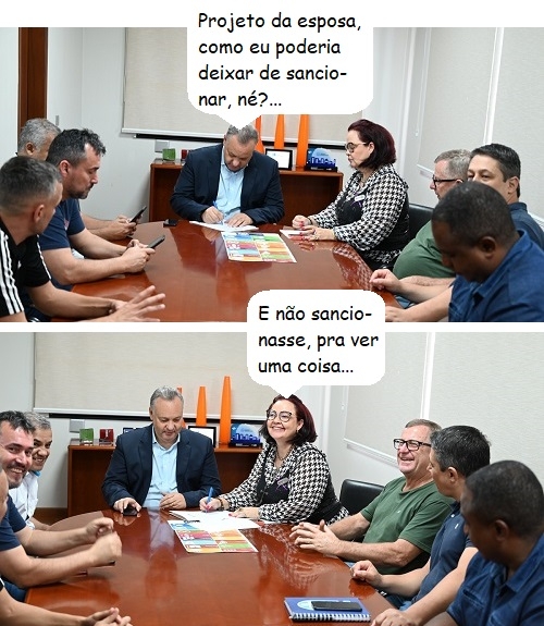 Os cliques são desta terça-feira, em Ubiratã, onde o prefeito Fábio D"Alécio sancionou a lei que institui a política de promoção da agenda 2030 para o desenvolvimento sustentável. Detalhe: o projeto foi apresentado pela vereadora Luciane Munhoz D"Alécio, que é casada com o prefeito. Além dela, seis vereadores acompanharam a sanção do texto.