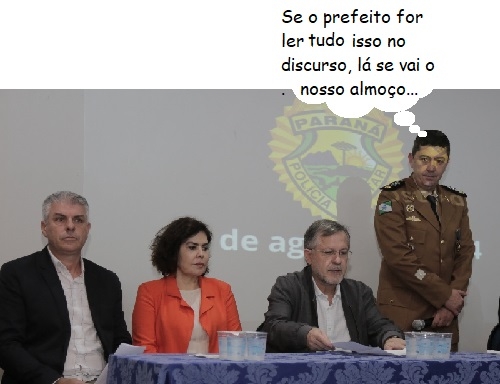 O clic é desta quinta-feira, na solenidade que comemorou, em Campo Mourão, os 169 anos da Polícia Militar do Paraná. O comandante do 11.o BPM, major Willian Silveira, comandou os trabalhos. O prefeito Tauillo Tezelli e o presidente da Câmara, Edilson Martins, prestigiaram o evento.