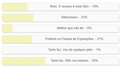 "O que você acha dos shows do Carneiro no Buraco acontecerem na praça central?" Enquete encerrada neste domingo deu vitória à alternativa "Tanto faz. Não vou mesmo", com 30% dos votos. Na sequência da disputa foi acirrada: "Retrocesso" teve 22%; "Preferira o Parque de Exposições" 21% e "Bom. O acesso é mais fácil", 18%. O resultado completo está no quadro acima.