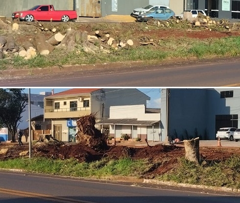 Massacre da serra elétrica pelo progresso da cidade. Duplicação da saída para Maringá.