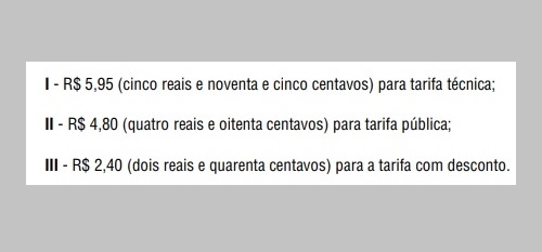 O decreto com a nova tarifa saiu no Órgão Oficial desta sexta-feira. A mesma edição traz a lei que prevê R$ 2,5 milhões para o poder público bancar o subsídio.