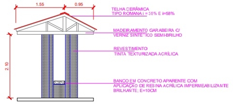 Eles terão bancos de concreto e cobertura em telha cerâmica.